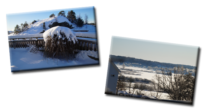 När vi kom hem igen åt vi en sen frukost innan vi gick ut för att skotta lite mer på vår parkering. Vi var även ute och tog lite fina vinterbilder, det är ju så himla fint ute nu med all snö. Igår läste jag att snömängderna nu slår snöstormen den 17 november 1995, helt galet ju. Skillnaden är väl att då kom all snö på en natt, medans det kom på två nätter nu.